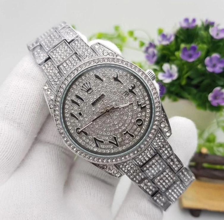 Diamond-Studded Case and Bezel: Adorned with premium-grade diamonds for a dazzling, luxurious appearance.